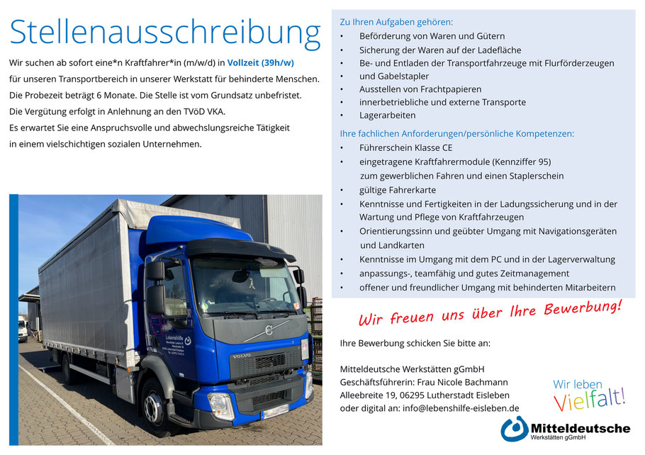 Wir suchen ab sofort eine/n Mitarbeiter*in (m/w/d) in Vollzeit 39 h/w